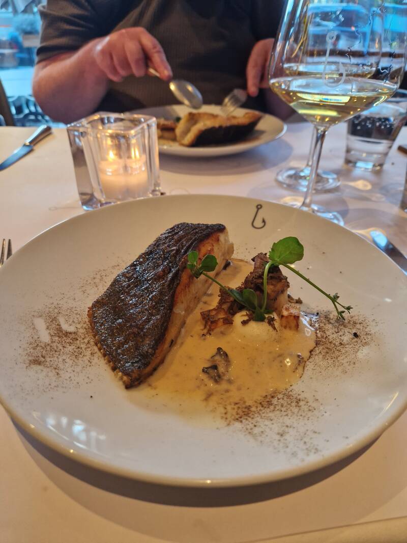 In het restaurant vis aan schelde. In Amsterdam zuid.